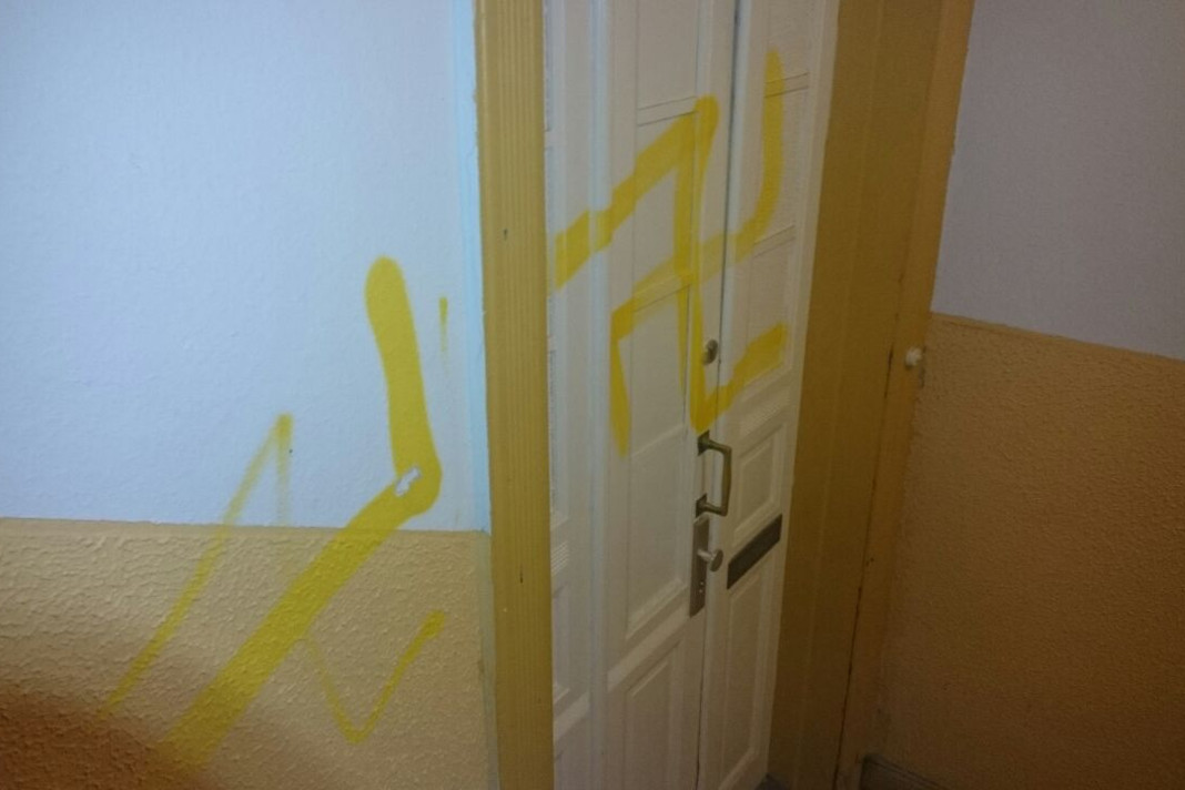 Nazi-Schmierereien im Treppenhaus: Hakenkreuz und Parolen. Foto: privat