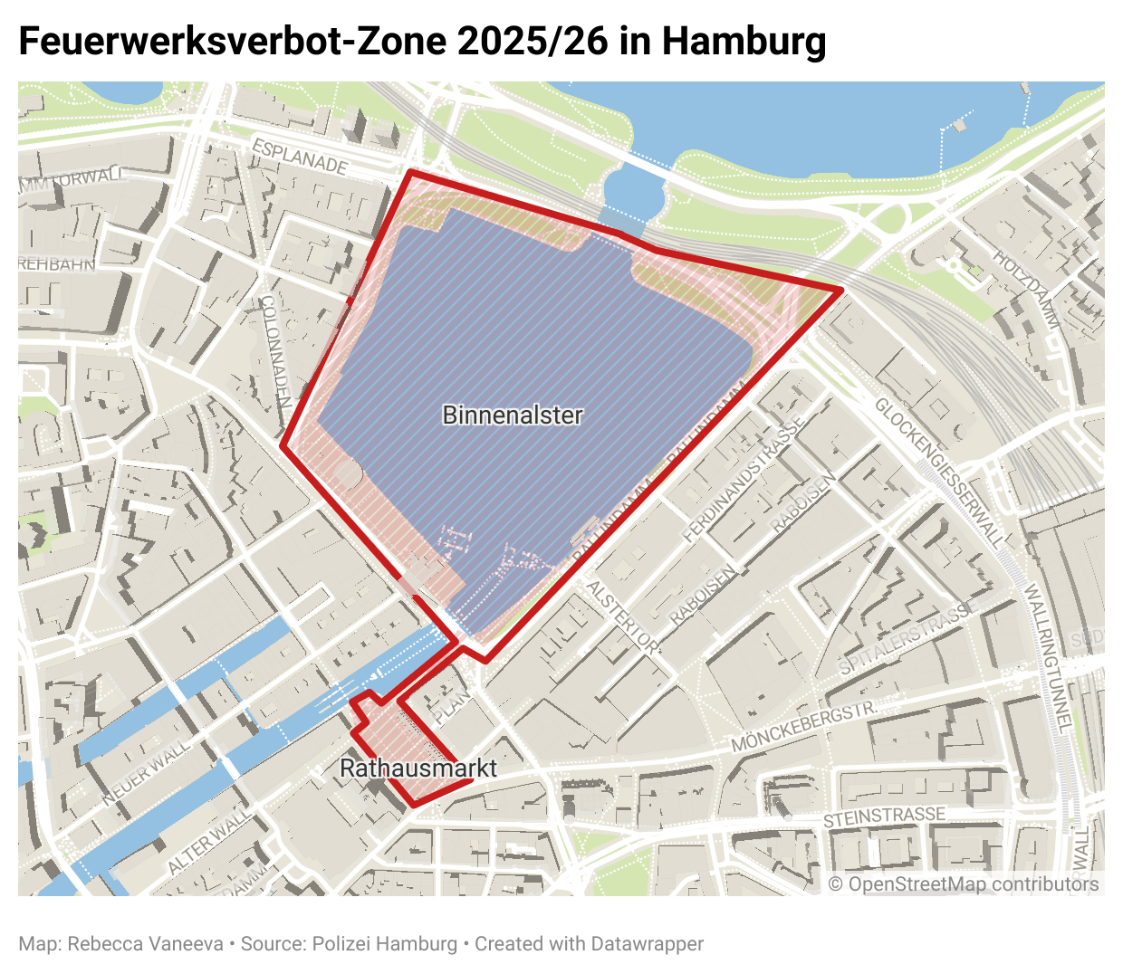 Vor dem Verbot kam es in der Silvesternacht rund um die Binnenalster immer wieder zu gefährlichen und bedrohlichen Situationen, weil Feuerwerk unsachgemäß gezündet wurde. Besucher*innen sowie Einsatzkräfte wurden laut Polizei teilweise gezielt mit Feuerwerkskörpern beworfen. Dabei seien zahlreiche Personen verletzt worden, darunter auch Kinder.