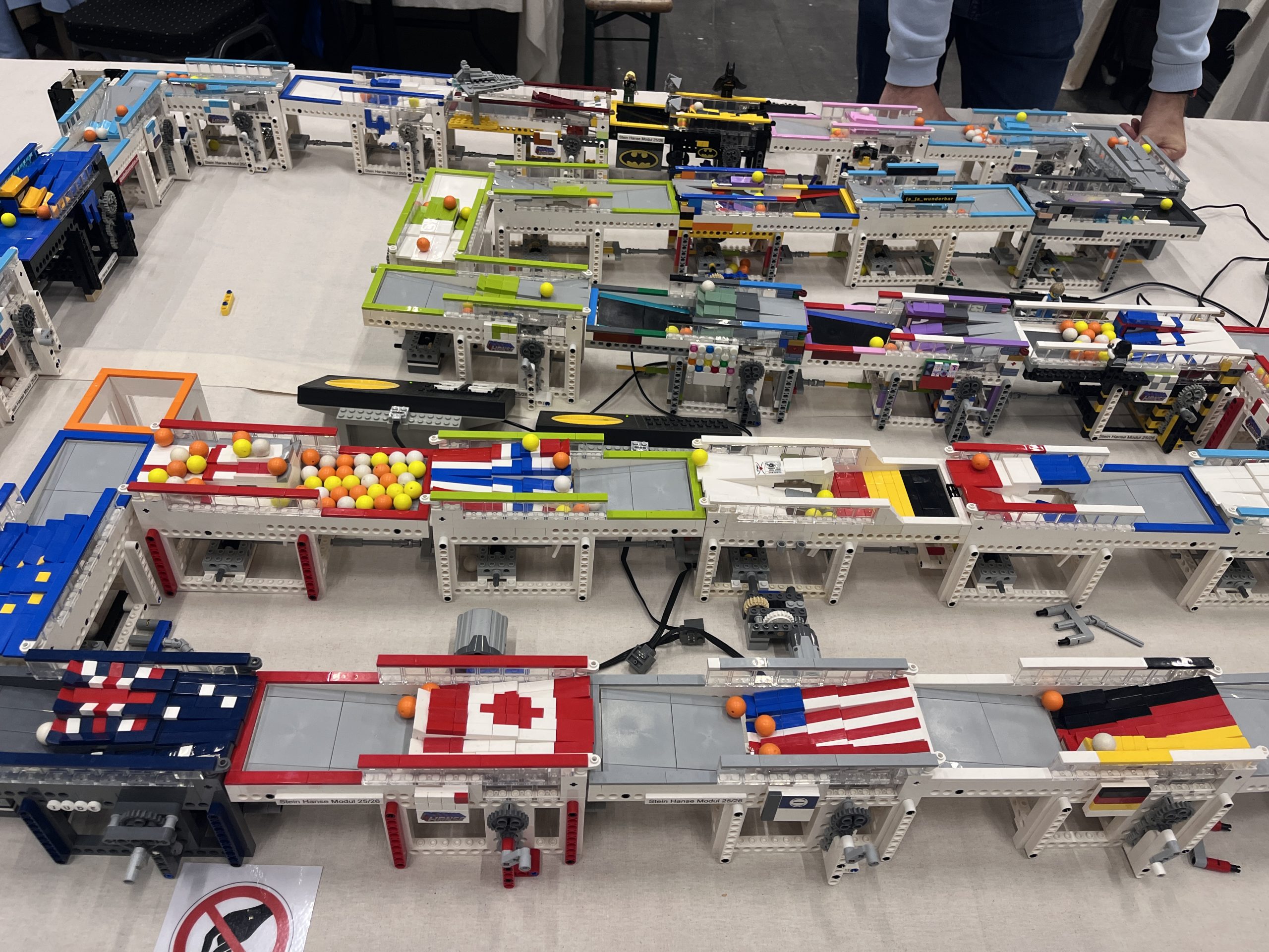 Der Verein Stein Hanse gibt Workshops, in denen sie ein typisches Modul für die Bahn erklären. Hier das gleiche Modul mit immer anderen Flaggen. Foto: Anny Norma Schmidt